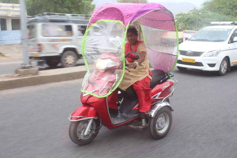 तस्वीरों में देखें महिला ने भीगने से बचने के लिए पैराशूट छतरी को बनाया यूं अपना सहारा