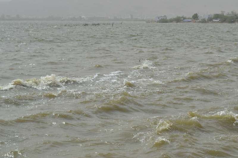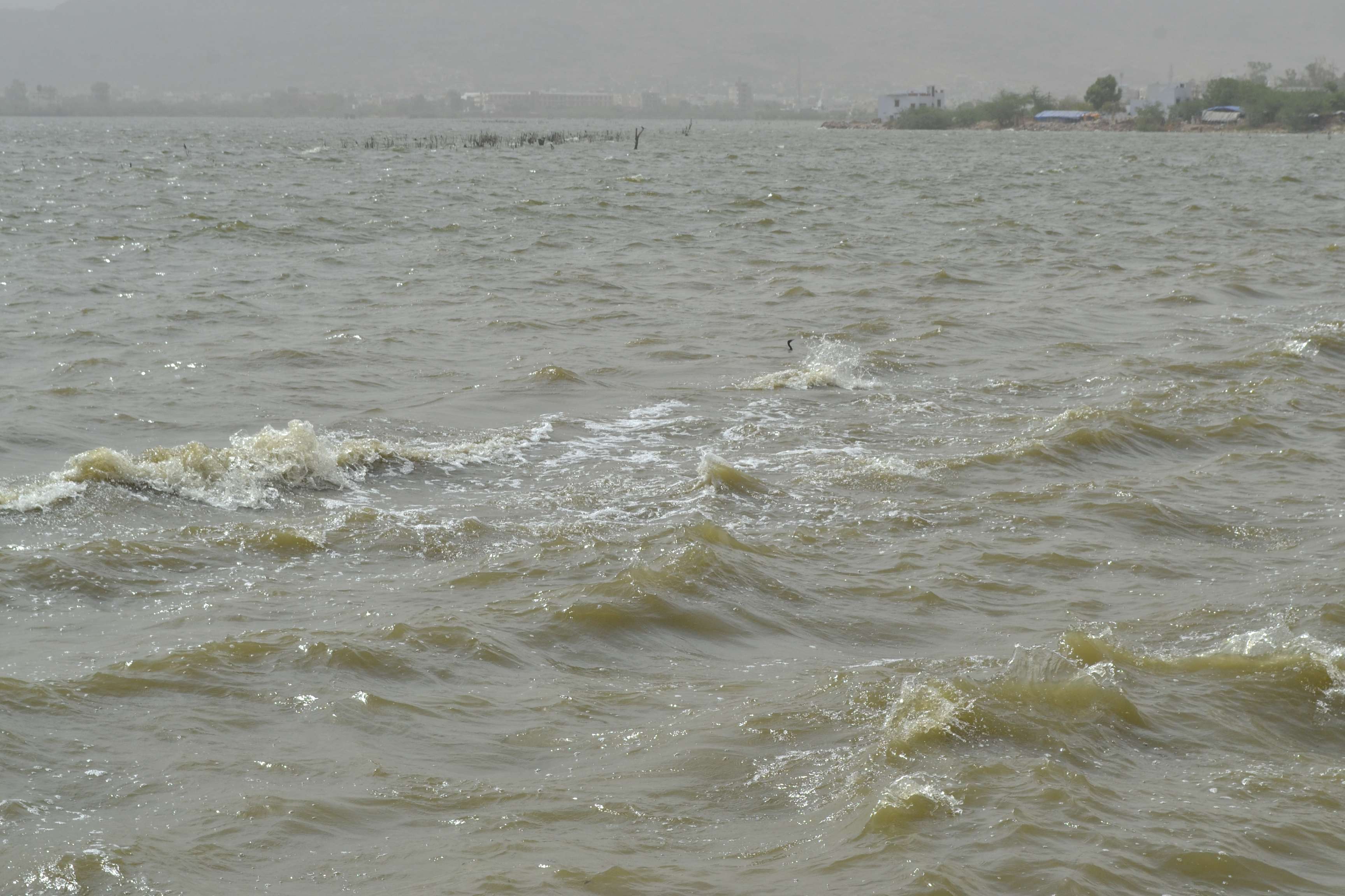 अजमेर. तेज हवाओं व मौसम के बदलते के रूख के साथ ही आनासागर झील में लहरें भी हिलोरे खाने लगी । जिसे देख हर कोई लहरों का आनंद लेने पहुंच गया।