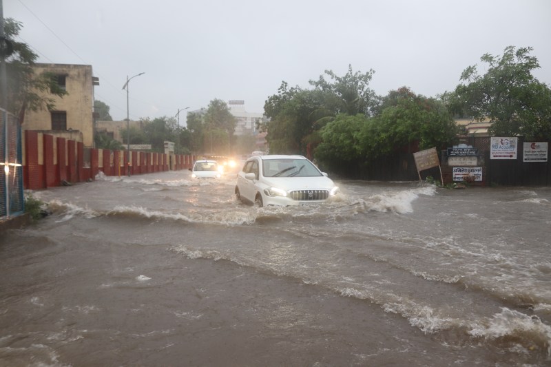Biperjoy effect: Rain pour ajmer city, water flows on road