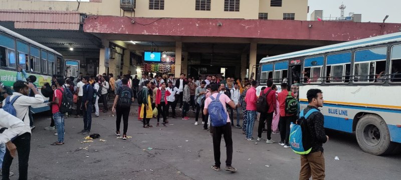 अजमेर. राजस्थान लोक सेवा आयोग की ओर से दो दिवसीय वन रक्षक परीक्षा के पहले दिन शाम को एक बार फिर केन्द्रीय रोडवेज बस स्टैंड पर एक बार फिर यात्रियों की आपाधापी नजर आई। दूसरी पारी की परीक्षा समाप्त होते ही अभ्यर्थियों का रैला बस स्टैंड पहुंच गया। लगभग 25 से 30 प्रतिशत अभ्यथी परिजन के साथ पहुंचे। कई अभ्यर्थियों के साथ बच्चे भी थे। एक बार फिर बस स्टैंड पर अफरा तफरी नजरआई। बसें कम पड़ने के कारण कई घंटे युवाओं को इंतजार करना पड़ा। एक बस के आते ही उसमें चढने की होड़ में कई युवा गिर गए। कुछ ने खिड़कियों से भी प्रवेश करने का प्रयास किया। आपाधापी का माहौल करीब दो घंटे रहा। प्लेटफार्म भी यात्रियों से अट गया।