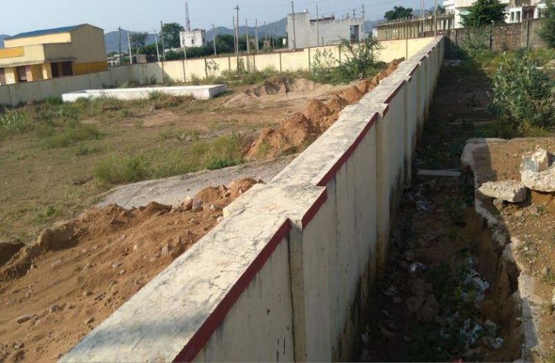 पुष्कर के गनाहेड़ा पंचायत क्षेत्र में पशु मेले के लिए निर्मित लोडिंग रैम्प पर बनाई गई चाहरदीवारी।