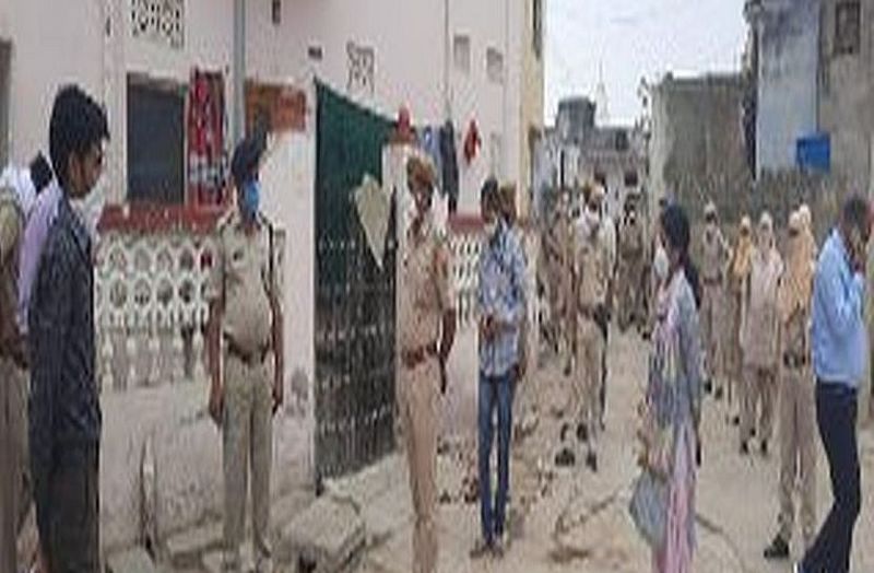 अजमेर जिले के अरांई कस्बे में शुक्रवार को कफ्र्यू के दौरान जायजा लेते पुलिस अधिकारी व अन्य। पत्रिका,अजमेर जिले के अरांई कस्बे में शुक्रवार को कफ्र्यू के दौरान जायजा लेते पुलिस अधिकारी व अन्य। पत्रिका