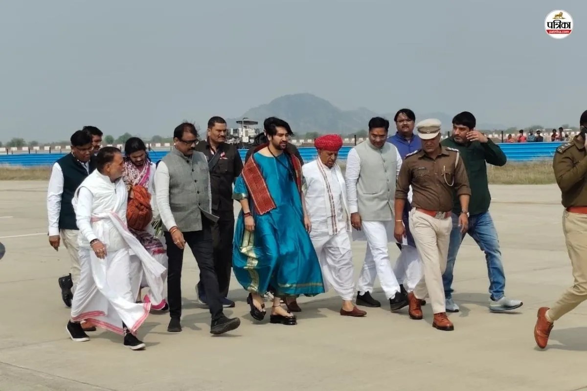 किशनगढ़ एयरपोर्ट पर बागेश्वर धाम के महंत धीरेंद्र कृष्ण शास्त्री (फोटो-पत्रिका)