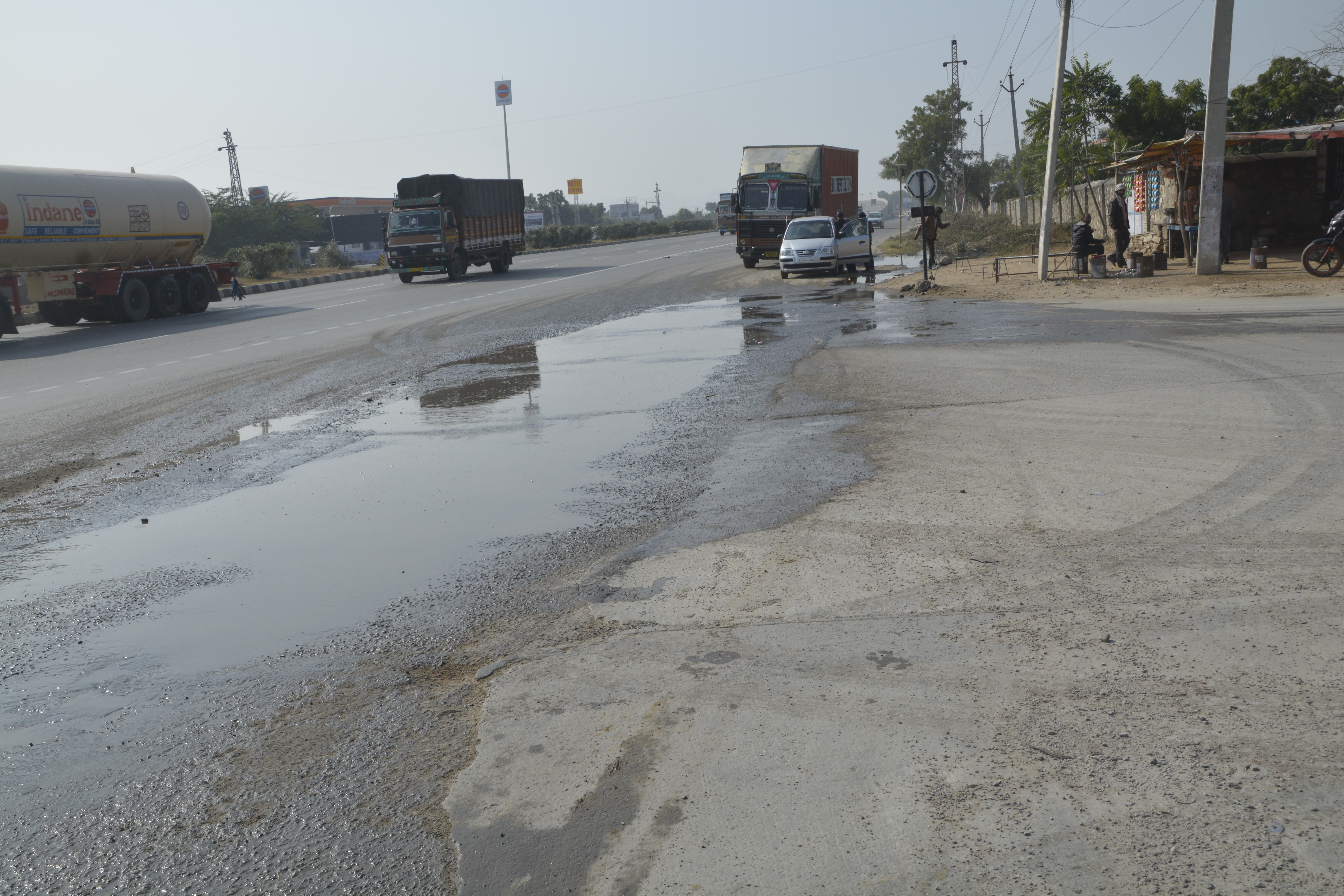 राष्ट्रीय राजमार्ग संख्या 8 पर अशोक उद्यान के निकट बहता एक आवासीय कॉलोनी से निकला सीवरेज का गंदा पानी।