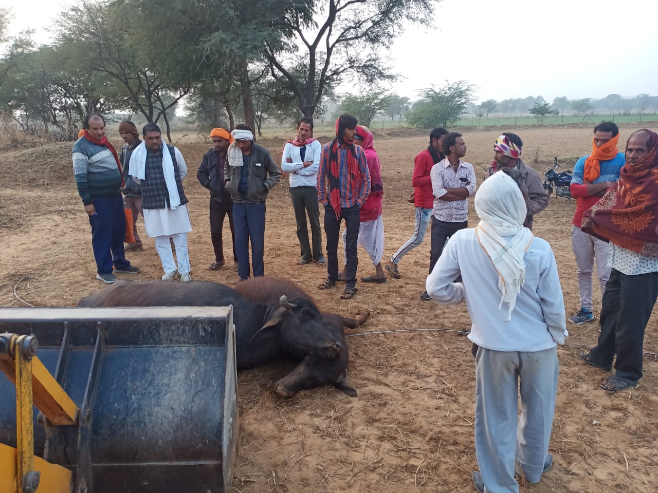 भैंसों के करंट लगने की सूचना (Information)मिलते ही सरपंच शक्ति सिंह रावत ने उपखंड अधिकारी समंदर सिंह भाटी को सूचना दी। थाना मांगलियावास, विद्युत निगम सराधना एईएन महेश चौहान, चिकित्सा अधिकारी मुकेश गुर्जर को मौके पर बुलाया। उन्होंने आक्रोशित ग्रामीणों को समझाया। सरपंच रावत ने निगम से मुआवजा दिलाने का विश्वास दिलाया। भैंसों का मौके पर ही पोस्टमार्टम (postmartam )करवाया गया।