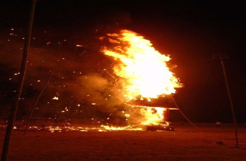 बिजयनगर (अजमेर). एक ओर जहां देश भर में असत्य पर सत्य की जीत का प्रतीक पर्व दशहरा दशमी को मनाया जाता है वहीं बिजयनगर के प्रमुख तीर्थ स्थल बाड़ी माता धाम में अष्टमी पर रविवार को ही दशहरा मना कर रावण दहन कर लिया गया। अष्टमी पर रावण दहन की परंपरा यहां बरसों पुरानी है। क्षेत्र में गुलाबपुरा स्थित आगूंचा माइन्स में वृहद स्तर पर रावण दहन समारोह आयोजित किया जाता है। इस विशेष दशहरा समारोह में आस-पास के 70 से अधिक गांव-कस्बों के लोग शामिल होते हैं। समारोह में भाग लेने के लिए बिजनयगर से भी बड़ी तादाद में लोग जाते हैं। इसलिए यहां अष्टमी पर दशहरा मना लिया जाता है।