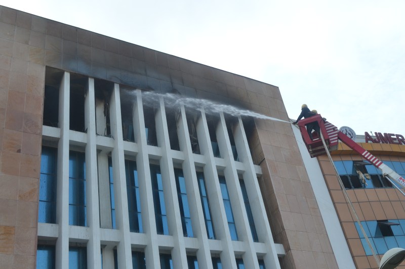 आग लगने के बाद भवन में चारो तरफ धुंआ फैल गया। धुंआ निकालने तथा आग बुझाने के भवन में लगे कांच, खिड़किया तथा शीशे के दरवाजे तोड़े गए। इसके बाद बाद आग बुझाने का काम तेजी से शुरु हुआ। आग बुझाने में फायर ब्रिगेड के अलावा एसडीआरएफ के 40 जवान, भेल तथा नगर परिषद किशनगढ़ के कर्मचारी शामिल हुए। आग लगने की जानकारी मिलते ही निगम के अधिकारी व कर्मचारी भी मौके पर पहुंचे तथा आग बुझाने में मदद की। नगर निगम की हाइड्रोलिक क्रेन के जरिए तीसरी मंजिल पर पानी की बौछार की गई।