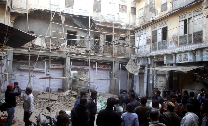 अजमेर. शहर के नया बाजार स्थित बिसायती गली में एक जर्जर मकान की मरम्मत के दौरान पहली मंजिल की बॉलकनी गिर गई, जबकि दूसरी बॉलकनी अधर होकर लटक गई। बॉलकनी के मलबे में दबने से चार लोग घायल हो गए। घायलों का जेएलएनएच में उपचार जारी है। भवन मालिक को नगर निगम की ओर से नोटिस दे रखा था। सूचना पर नगर निगम के अधिकारी व पुलिस भी मौके पर पहुंची।