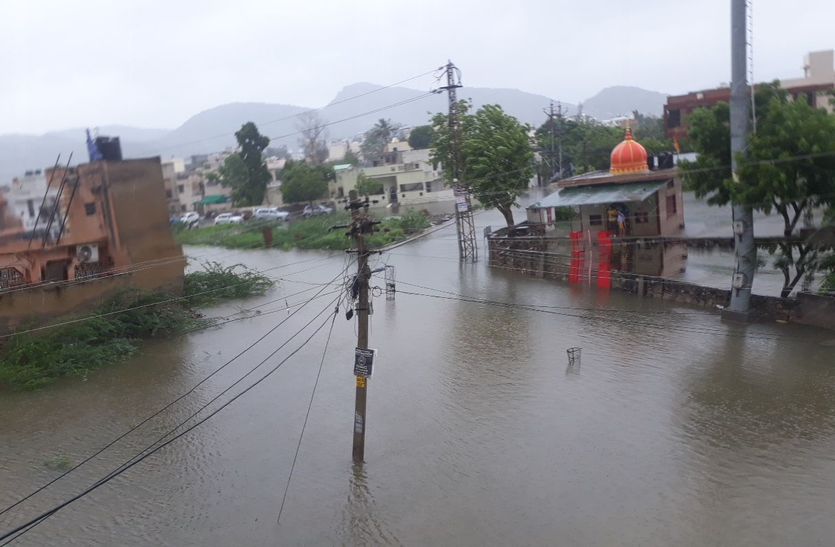 अजमेर जिले में बाढ़ जैसे हालात,नदी-नाले उफने,बस्तियां पानी से घिरी