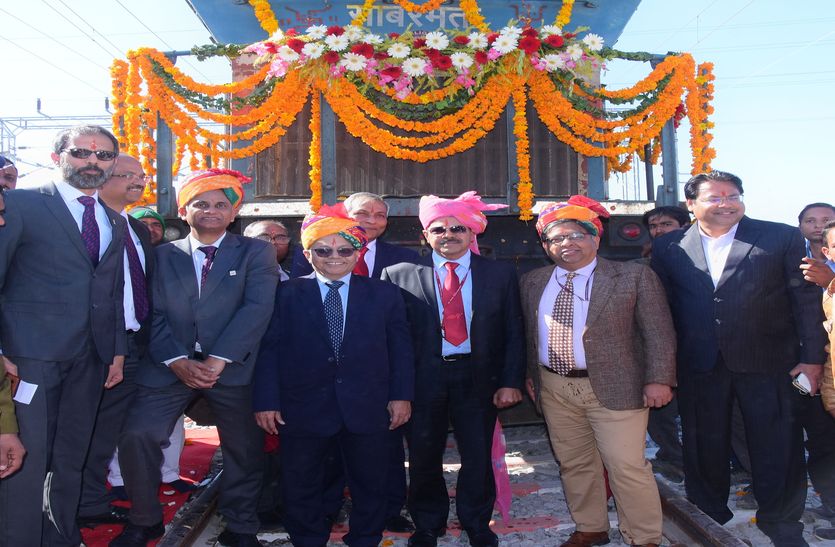 track of DFCC अजमेर. डेडिकेटेड फे्रट कॉरिडोर कॉर्पोरेशन लिमिटेड के न्यू किशनगढ़ स्थित रेलवे टै्रक पर शुक्रवार को डीजल इंजन से संचालित मालगाड़ी दौड़ी। डीएफसीसी के प्रबंध निदेशक अनुराग सचान ने मालगाड़ी के इंजन पर नारियल फोडक़र इसको रवाना किया। डीएफसीसी की ओर से यह परीक्षण संचालन है। गुजरात के पालनपुर तक कार्य मार्च 2020 तक पूरा होगा। लगभग 641 किलोमीटर के इस टै्रक के उद्घाटन के लिए प्रधानमंत्री नरेंद्र मोदी को बुलाने की तैयारी है।