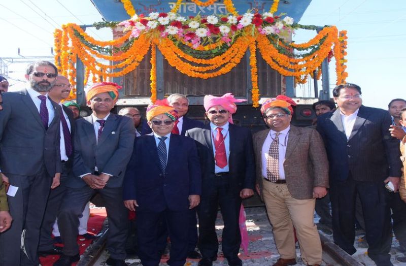 अजमेर जिले के न्यू किशनगढ़ स्थित रेलवे स्टेशन पर मालगाड़ी को ट्रैक पर परीक्षण बतौर रवाना करने से पहले डीएफसी के अधिकारी।