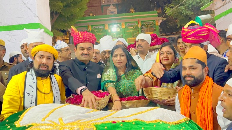 अजमेर। उद्योगपति गौतम अदाणी ने शनिवार को सपरिवार सूफी संत ख्वाजा मोईनुद्दीन चिश्ती की दरगाह में हाजिरी दी। उन्होंने मजार शरीफ पर मखमली चादर और गुलाब के फूल पेशकर दुआ मांगी। बिजनेसमैन गौतम अदाणी पत्नी प्रीति और भाई राजेश अदाणी के साथ शाम करीब 6 बजे गरीब नवाज की दरगाह पहुंचे।