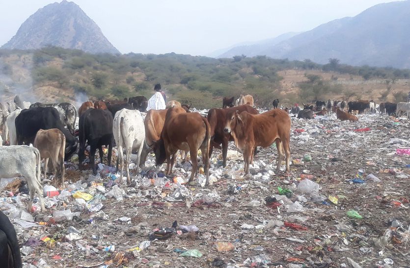 पुष्कर (अजमेर). पुष्कर नगर पालिका का स्वच्छता मिशन के बदलते स्वरूप से गोवंश की जान सांसत में आई हुई है। पालिका के सफाई कर्मी प्रतिदिन खरेखड़ी रोड पर ट्रेचिंग ग्राउंड से सटी सरकारी भूमि पर भी अथाह कूड़ा-करकट और सिंगल यूज प्लास्टिक का कचरा डाल रहे हैं। अपनी भूख मिटाने के लिए काफी संख्या में सरकारी भूमि के आस-पास विचरने वाले गोवंश के पेट तक इसी प्लास्टिक का कचरा पहुंच रहा है। ट्रेचिंग ग्राउंड से सटे क्षेत्र में अथाह प्लास्टिक का कचरा डालने से रेतीले धोरे कूड़े के ढेर में तब्दील हो रहे हैं। पुष्कर में स्वच्छता मिशन के बदलते स्वरूप को लेकर पर्यावरण, गोवंश एवं पर्यटन तीनों नष्ट होते जा रहे हैं।
