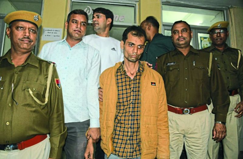 क्रिश्चियन गंज थाना पुलिस की गिरफ्त में आया पत्नी की हत्या का आरोपी मुकेश केशवानी।