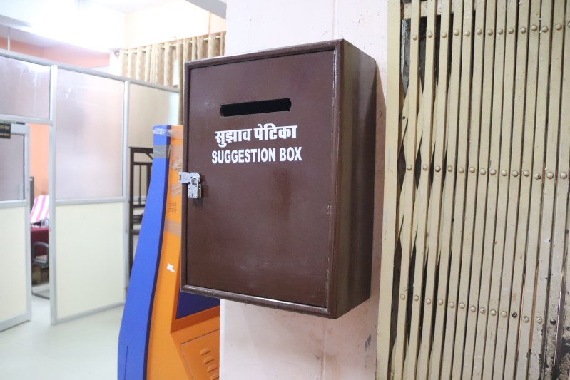 स्वागत कक्ष में सुझाव पेटिका लगाई गई है। इसमें अभ्यर्थी-आगंतुक उपयोगी सुझाव-समस्याएं लिखकर पर्ची छोड़ सकते हैं। हम नियमित अंतराल में उनका समाधान करेंगे और उनका उचित जवाब भी देंगे।