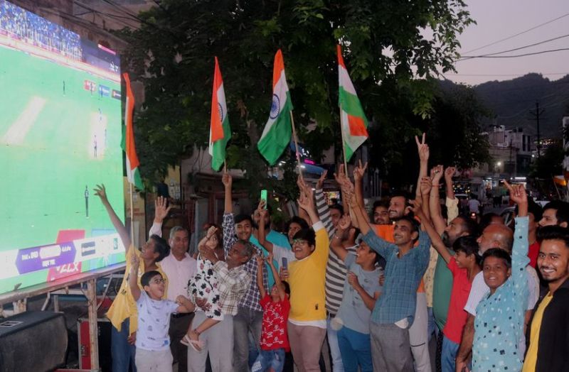 दोपहर में मैच शुरू होते ही लोग टीवी, एलईडी स्क्रीन के आगे जुट गए। जैसे-जैसे पाकिस्तान के बल्लेबाज पवेलियन लौटे लोगों ने जमकर तालियां बजाई। इसके बाद भारतीय पारी शुरू होते ही दर्शकों का रोमांच बढ़ गया। टीम इंडिया के कप्तान रोहित शर्मा की आतिश पारी पर लोग उत्साहित हो गए। चौके-छक्कों की बरसात पर भरपूर तालियां बजीं। जैसे ही टीम इंडिया जीती, लोगों का उत्साह बढ़ गया। कई जगह आतिशबाजी की गई। लोगों ने चेहरों पर तिरंगा भी बनवाया।