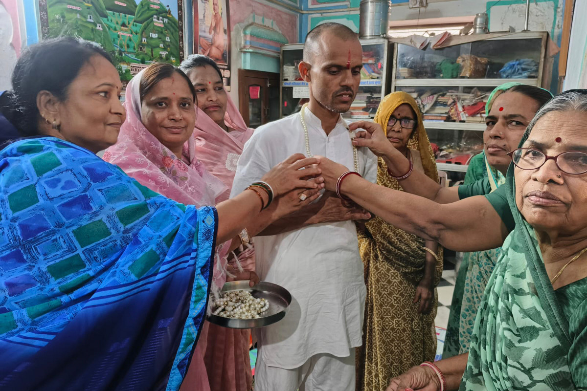 केकड़ी (अजमेर)। धुंधरी गांव निवासी बाल ब्रह्मचारी कमलेश जैन ने सरकारी नौकरी छोड़कर संयम के मार्ग को अपनाने का निर्णय लिया। उनके संयम की अनुमोदना करने के लिए विभिन्न सामाजिक कार्यक्रमों का आयोजन किया गया। पार्श्वनाथ दिगंबर जैन मंदिर में श्रीजी के अभिषेक व शांतिधारा की गई। दोपहर में विनतियों का कार्यक्रम हुआ, जिसमें बाल ब्रह्मचारी कमलेश के साथ ही समाज की महिलाओं ने परिजनों का तिलक लगाकर, माला पहनाकर सम्मान किया।