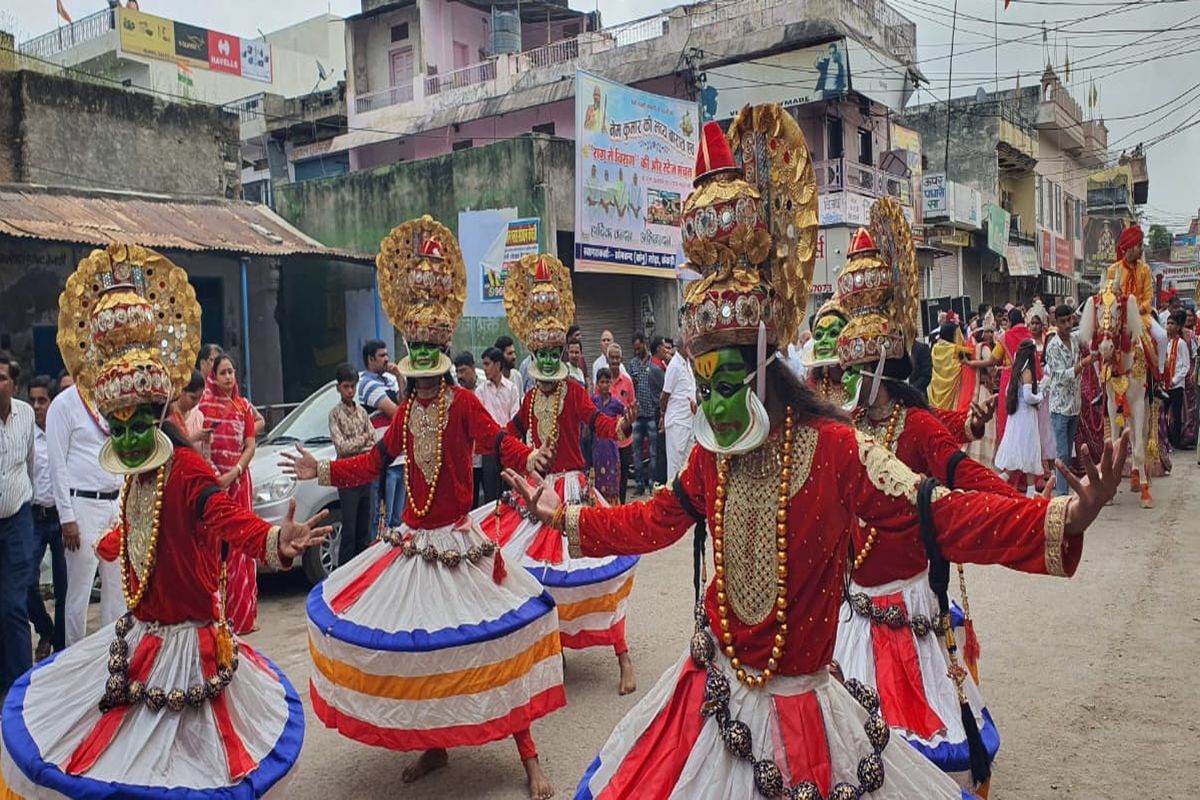 नेमिनाथ भगवान की बारात में कुचिपुड़ी नृत्य की प्रस्तुति देते कलाकार।