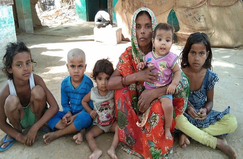 धौलपुर जिले के बसेड़ी गांव में अपनी छह बेटियों के साथ प्रवासी महिला श्रमिक।