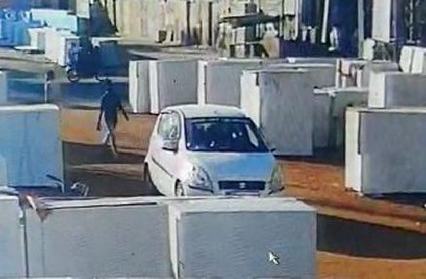सीसीटीवी फुटेज में गोदाम परिसर में सफेद कार खड़ी नजर आ रही है। इसी दौरान गोदाम के पास ही रखी थप्पियों की ओट में खड़े दो युवकों में से एक युवक आगे चल कर आता है और वह कार के पास से भीतर देखता हुआ पुन: लौटता नजर आ रहा है।