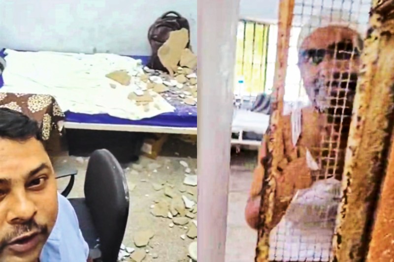 पुलिसकर्मी ने बताया कि गनीमत रही कि प्लास्टर उसके पैरों के पास गिरा, वरना मुश्किल हो जाती। बाद में पुलिसकर्मी बतियाते नजर आए कि छत के प्लास्टर का और हिस्सा भी गिर सकता है। इससे कैदी भी घबराया नजर आया। एक वायरल वीडियो में कैदी पुलिसकर्मी की कुशलक्षेम पूछता साफ नजर आ रहा है।