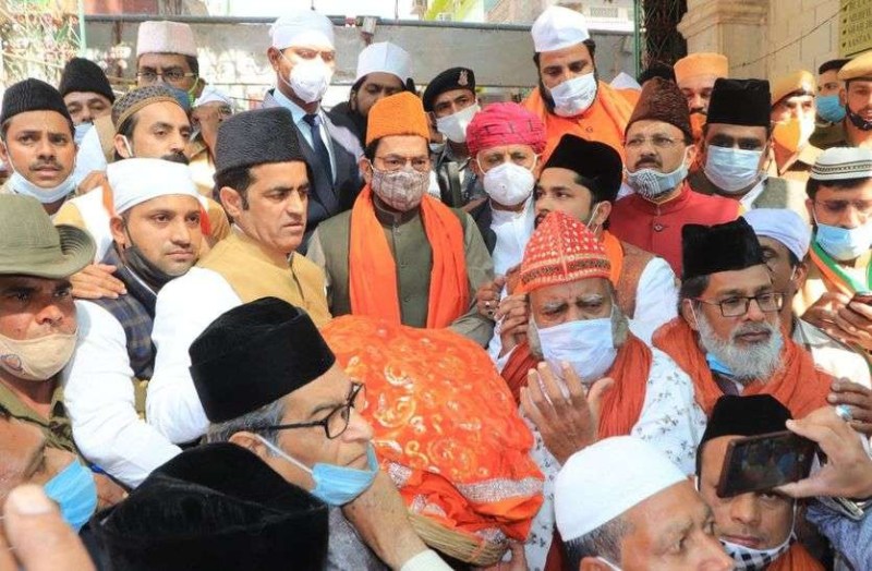 प्रधानमंत्री मोदी पिछले 7 वर्षों से ख्वाजा साहब के उर्स में चादर भेजकर हाजिरी लगा रहे हैं। इस बार भी उनकी चादर लेकर केन्द्रीय मंत्री नकवी मंगलवार को दरगाह पहुंचे। सुनहरे वर्क वाली केसरिया रंग की चादर उनके हाथ में देखकर दरगाह में मौजूद लोगों ने खुशी जताई। उन्होंने इसे चिश्तिया और बसंती रंग बताया।