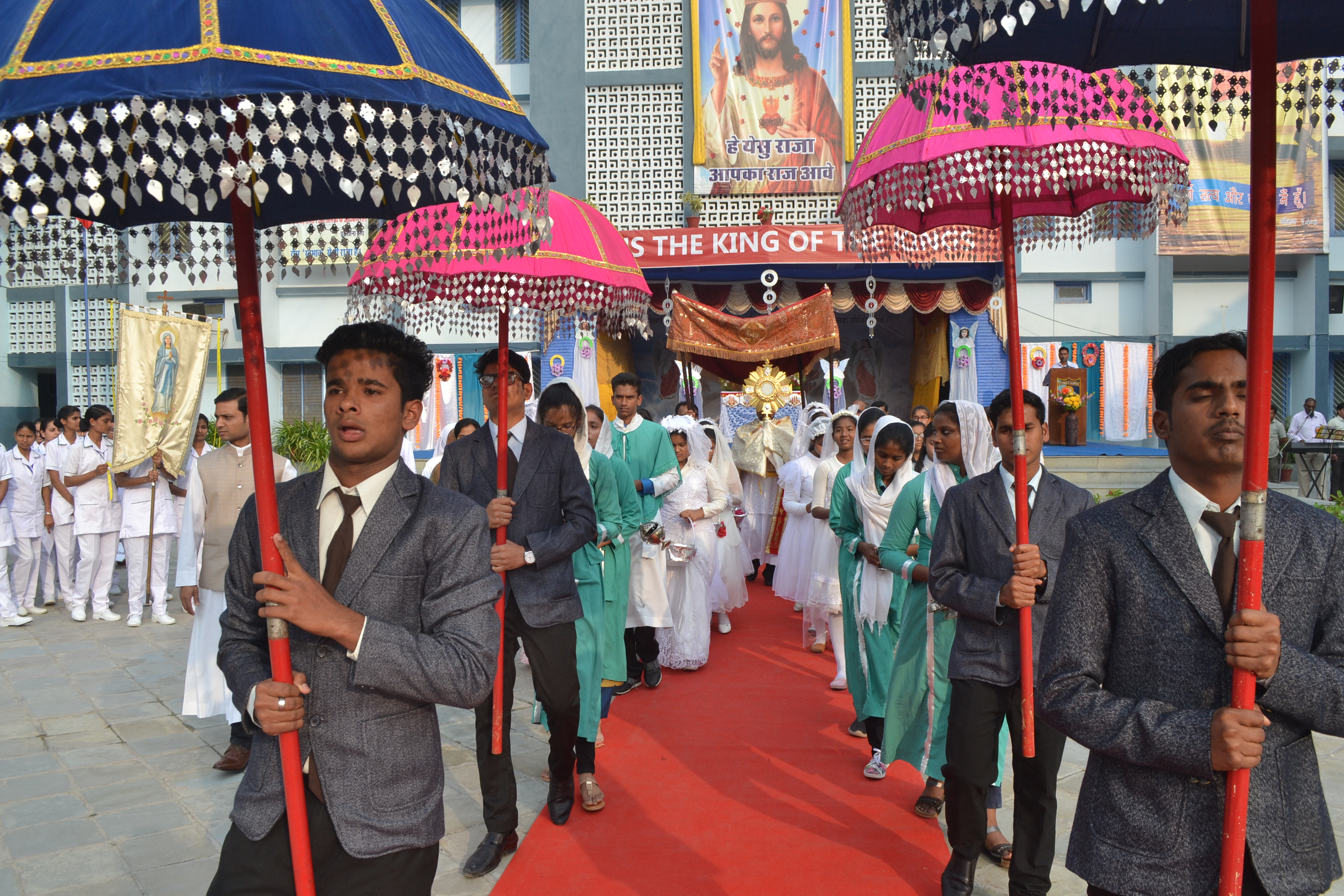सेंट पॉल्स स्कूल में फादर कॉसमॉस शेखावत (cosmos sekhawat) की अगुवाई में पवित्र यूख्रीस्त की पूजा-अर्चना हुई। उन्होंने कहा कि यीशू ने स्वयं दुख झेलकर भी मानव कल्याण के लिए जीवन न्यौछावर किया था। उन्नके गरीबों की सेवा और त्याग का संदेश हमें अपनाना चाहिए। इस दौरान जुलूस प्रार्थनाओं के बीच रवाना हुआ।