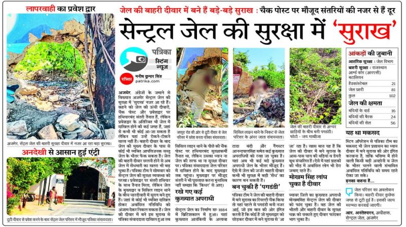 'पत्रिका' में 5 मार्च के अंक में ‘सेन्ट्रल जेल की सुरक्षा में ‘सुराख’ शीर्षक से स्टिंग न्यूज प्रकाशित होने के बाद सेन्ट्रल जेल प्रशासन बुधवार को एक्शन मोड में नजर आया। जेल अधीक्षक आर. अनन्तेश्वरन ने जेल की बाहरी सुरक्षा दीवार का जायजा लेने के बाद क्षतिग्रस्त दीवार की मरम्मत के आदेश दिए। बुधवार सुबह जेल के सामने की बाहरी दीवार में बने बड़े-बड़े सुराखों की मरम्मत का काम शुरू हो गया। गौरतलब है कि बाहरी दीवार में करीब तीन से चार जगह बड़े-बड़े सुराख बने हुए थे। जिससे बाहरी असामाजिक तत्वों ने जेल के भीतर आवाजाही का रास्ता बना लिया था। दीवार की मरम्मत से बाहरी लोगों के भीतर प्रवेश पर अंकुश लग सकेगा।
