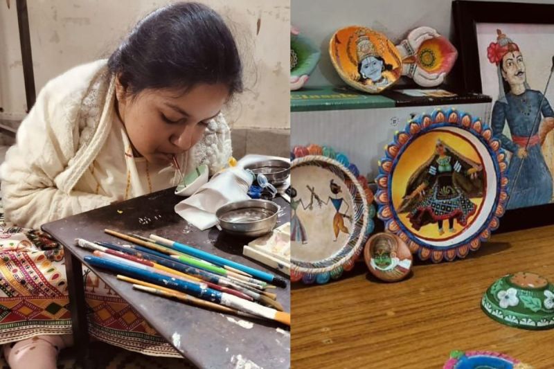 Rajasthan News : परिंदों को मिलेगी मंजिल यह उनके फैले पंख बोलते हैं. .वही रहते हैं खामोश अक्सर जमाने में जिनके हुनर बोलते हैं. .। इन लफ्जों की हकीकी मिसाल है अजमेर के चौरसियावास रोड किसान कॉलोनी निवासी प्रकाश चंद गौड़ की 23 वर्षीय पुत्री नंदिनी गौड़। जिसके हाथ-पैरों में बेशक स्पंदन और गति नहीं, लेकिन जहन में कल्पनाओं का संसार है. .मिजाज में रंग हैं. .और मुंह में कलम और कूंची. .। वे मुंह में पैंसिल और रंगों की कूंची लिए कई आकृतियां उकेर उन्हें रंगों से सजा चुकी हैं। हाल ही में मिट्टी के दीपक पर उनके द्वारा बनाई गई श्रीराम की आकृति को लोगों ने खूब सराहा। प्रधानमंत्री नरेन्द्र मोदी भी उनकी सराहना कर चुके हैं। जन्म से ही निस्पंद हाथ-पैरों के बावजूद जीवन जीने की जिजीविषा को धार देकर नंदिनी ने पेंटिंग में जीवन के रंग तलाशने शुरू कर दिए। बिना किसी औपचारिक प्रशिक्षण उन्होंने मुंह से पेंटिंग बनाना शुरू किया। मंगलवार को माल रोड स्थित गौड़ भवन में उन्होंने मौके पर ही पेंटिंग बनाकर अपने हुनर का लोहा मनवाया। उनकी बनाई गई कलाकृतियों की प्रदर्शनी भी लगाई गई जिसे लोगों ने खूब सराहा।