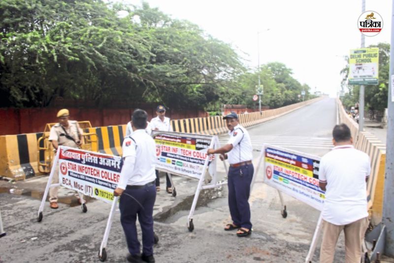 रामसेतु ब्रिज से बैरिकेड हटाने ट्रैफिक पुलिसकर्मी। फोटो: पत्रिका