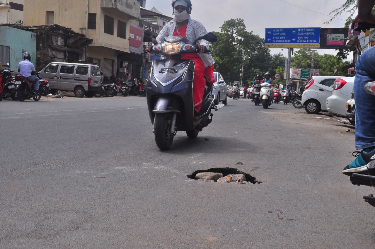 Road : सावधान! चलते वाहन का पहिया न धंस जाए कहीं