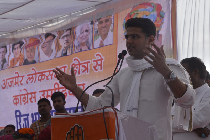 अजमेर के कायड़ तिराहे पर सभा को संबोधित करते हुए पायलट ने कहा कि भाजपा नेता नाकामी छुपाने के लिए मंदिर-मस्जिद, हिंदु-मुसलमान और हिंदुस्तान-पाकिस्तान की बातें कर रहे हैं लेकिन गांव, सडक़, शिक्षा, विकास, पानी जैसे जनता से जुड़े मुद्दों की अनदेखी कर रहे हैं। उन्होने दावा किया किया पूरे देश में बदलाव की हवा चल रही है। विधानसभा चुनावों में राजस्थान, मध्यप्रदेश, छतीसगढ़ में कांग्रेस की जीत इसका सबूत है। उन्होंने परोक्ष रुप से परमाणु बम के बारे में मोदी की बयानबाजी पर कटाक्ष करते हुए कहा परमाणु बम भाजपा के रसोई घर में नहीं बना है। इसे देश के वैज्ञानिकों ने कड़ी मेहनत करके बनाया है। इसमें इंदिरा गांधी, अटलबिहारी वाजपेई, नरसिम्हाराव, मनमोहनङ्क्षसह जैसे पूर्व प्रधानमंत्रियों का योगदान रहा है। सभा को चिकित्सा मंत्री रघु शर्मा ने भी संबोधित किया।