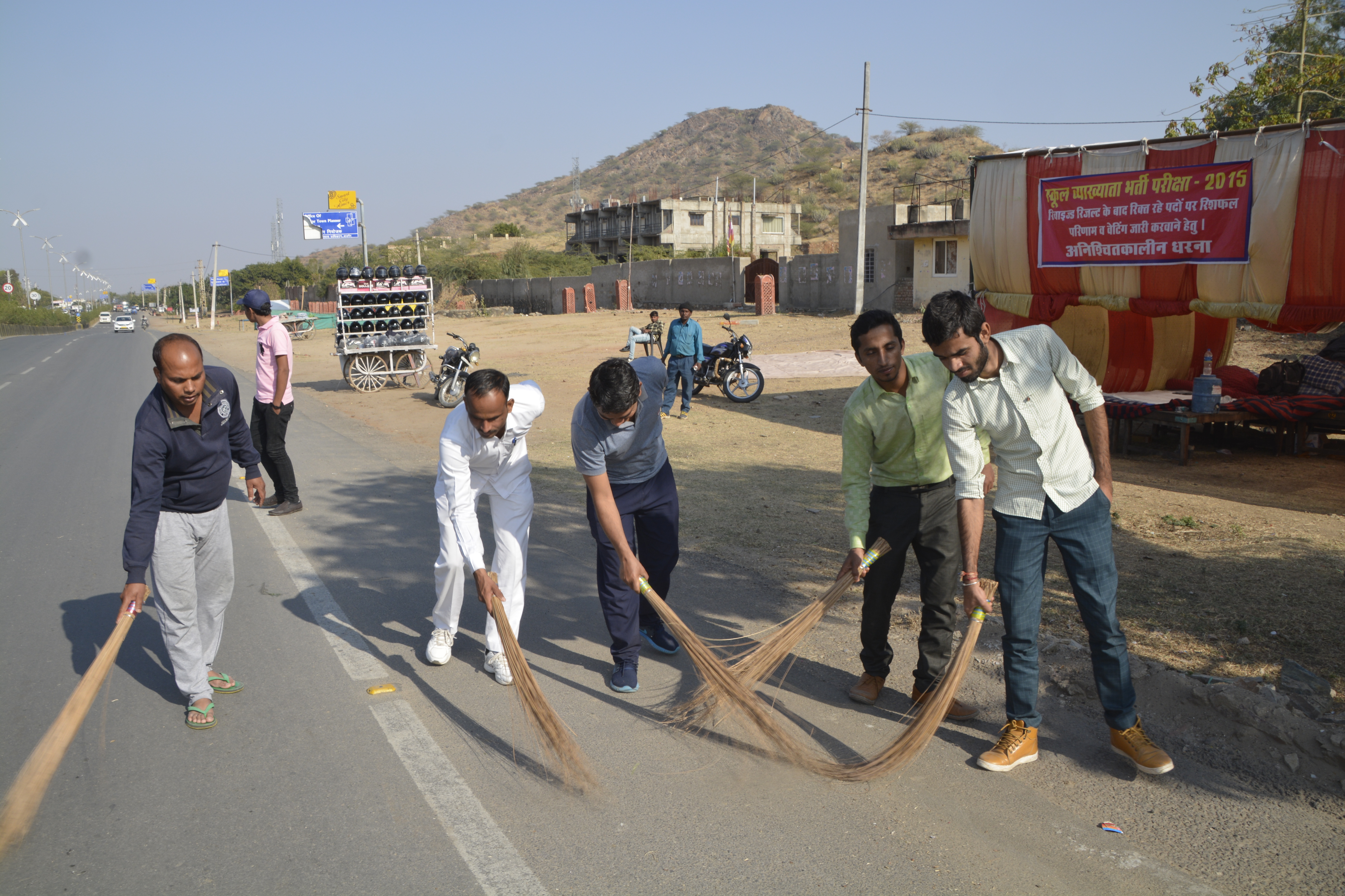 अभ्यर्थियों ने आयोग और आसपास के क्षेत्र में सडक़ पर झाड़ू लगाई। इस दौरान महेश सैनी, कमल कुमार, भूपेंद्र सिंह और अन्य मौजूद थे। उधर राजस्थान बेरोजगार एकीकृत महासंघ के प्रदेशाध्यक्ष उपेन यादव ने आंदोलन को समर्थन दिया है। अभ्यर्थियों ने मंत्रियों और विधायकों से मुलाकात का फैसला भी किया है।