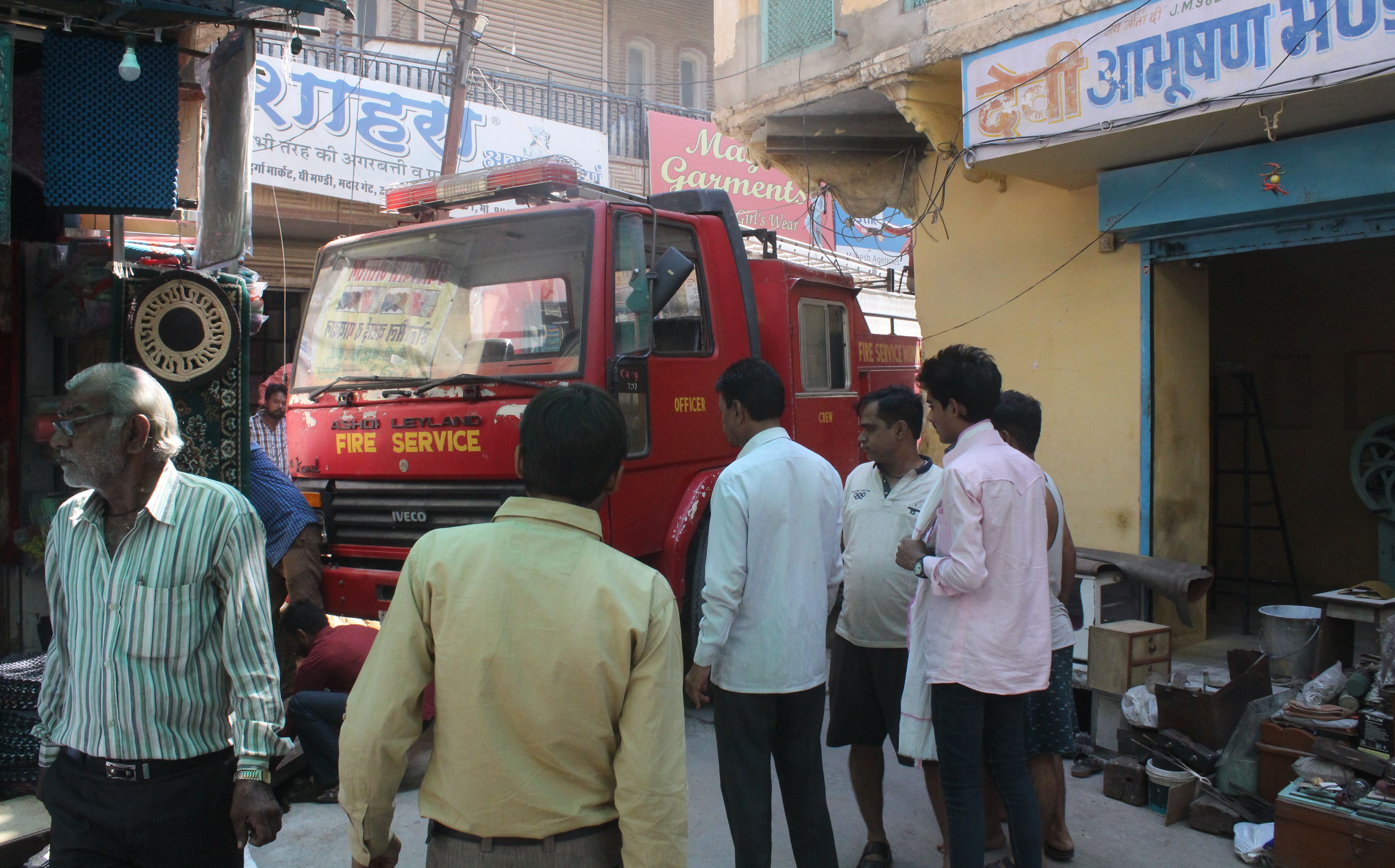 दमकल कर्मचारियों ने बताया कि आग को बुझाने के लिए पांच दमकल वाहन तैनात किए गए। छोटी ४०७ को गली में घुसाने के बाद बाकी ५ बड़ी गाडिय़ां लगातार पानी के लिए चक्कर लगाती रही। कुल ३० चक्कर के बाद आग पर काबू पाया जा सका।