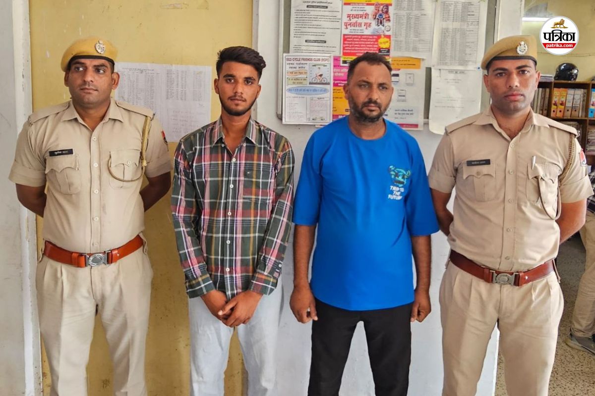 पुलिस की गिरफ्त में तस्कर पिता-पुत्र। फोटो: पत्रिका