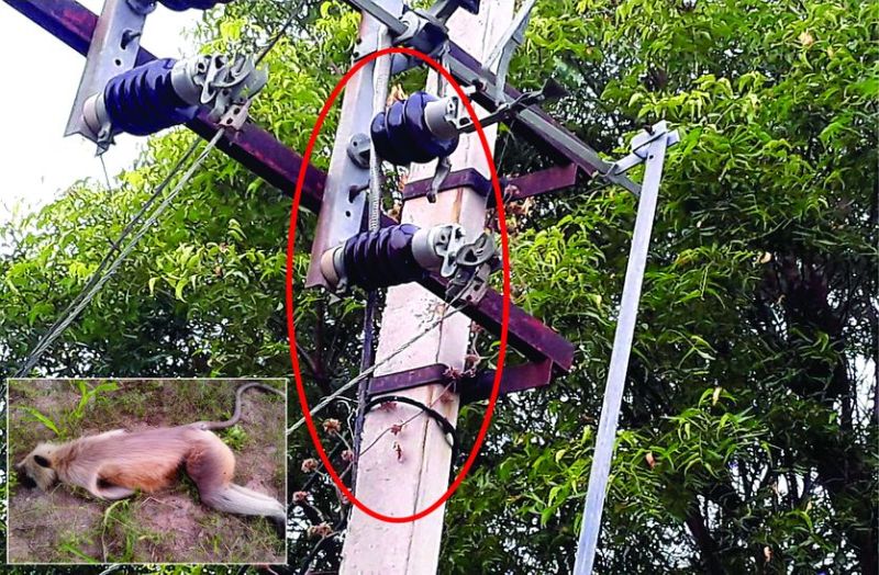 बिजली के खम्भे पर चढ़े बंदर और सांप की करंट लगने से हुई मौत