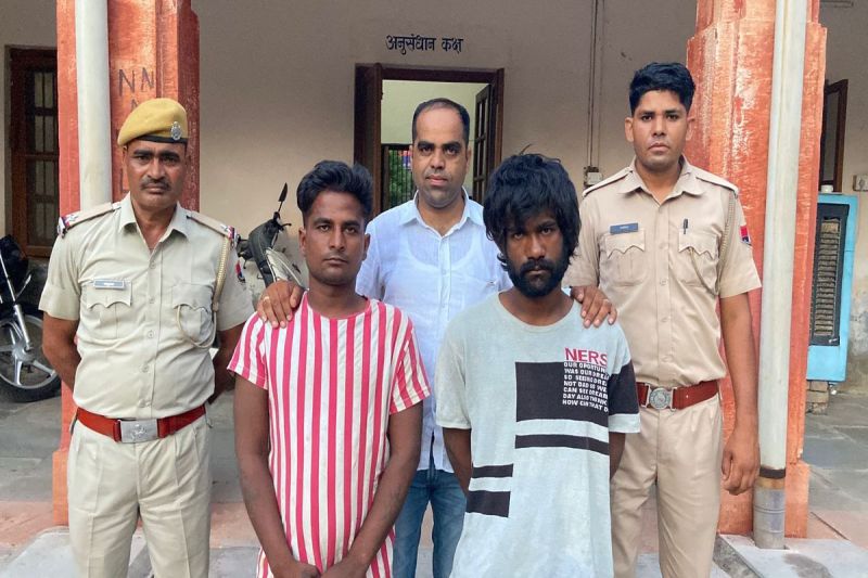 पुलिस अधीक्षक वंदिता राणा ने बताया कि 26 जून को अलवर गेट थाना क्षेत्र में मदार स्थित माधव कॉलोनी में सब्जी खरीदने के दौरान डॉ सत्यनारायण ताजी की पत्नी मनजीत मेघवाल के गले से सोने की चेन तोड़ने के मामले में अजमेर, दौराई मस्जिद के पीछे हाल भीलवाड़ा गुलाबपुरा 29 मील लाम्बिया रोड निवासी सूरज उर्फ शरीफ (23) पुत्र किशोर सिंघीवाल बंजारा व उसके छोटे भाई करण उर्फ पिन्टू(21) को गुलाबपुरा 29 मील चौराहा से दबोचा।एसपी ने बताया कि डीएसटी व अलवरगेट थाना पुलिस ने सीसीटीवी में आरोपियों का चेहरा नजर आने पर मुखबिरतंत्र की मदद से तलाश शुरू की। अभय कमांड सेंटर में तैनात हैडकांस्टेबल सीताराम व सिपाही रामनिवास ने 200 सीसीटीवी कैमरे की फुटेज टटोली। परिवादी के बताए हुलिए से मुखबिर ने दो संदिग्धों के गुलाबपुरा 29 मील चौराहा पर देखने की सूचना दी। अलवर गेट थाना, डीएसटी ने संयुक्त कार्रवाई करते हुए संदिग्धों को डिटेन किया।