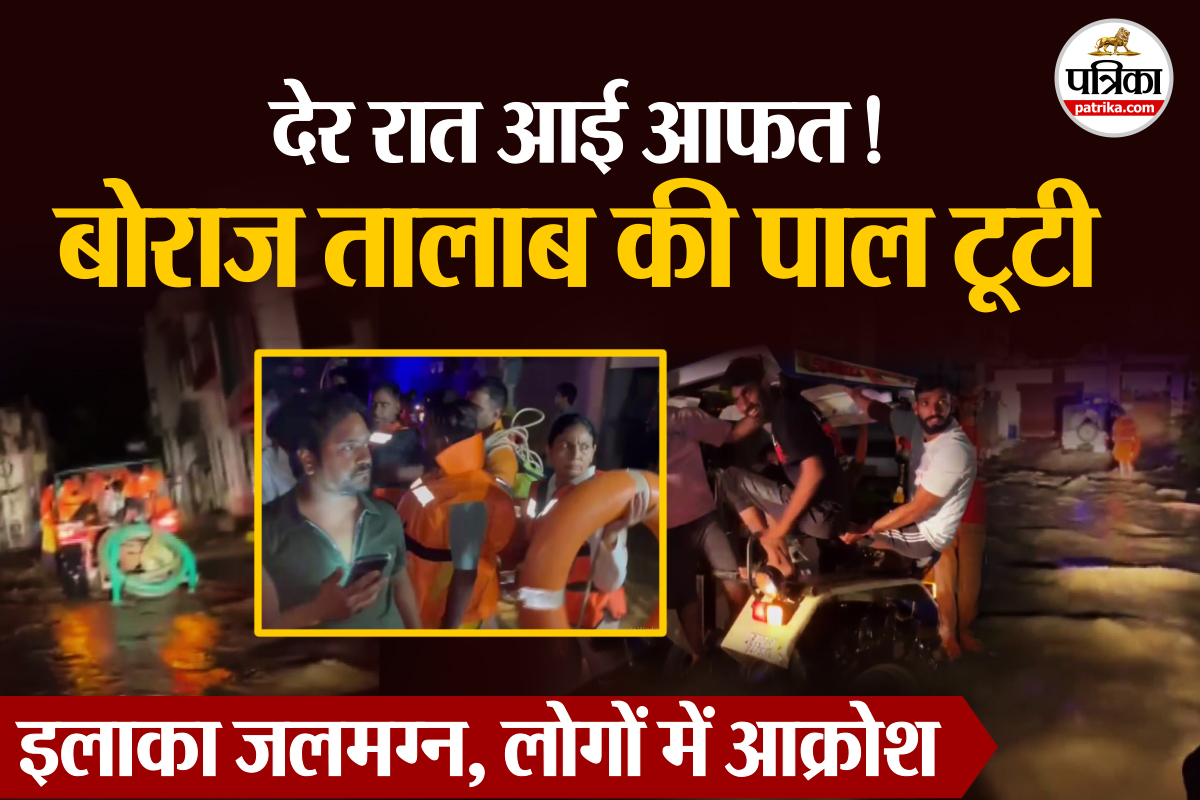 गुरुवार को झमाझम बरसात के कारण बोराज तालाब लबालब भर गया। इसकी पाल से पानी का रिसाव शुरू हो गया। वरुणसागर रोड-रावत नगर के समीप स्वास्तिक नगर में जलभराव से लोगों में अफरा-तफरी मच गई। खेतों से होता हुआ पानी कॉलोनी की सड़कों-मकानों तक पहुंच गया। रात 11.45 बजे तालाब की पाल तेज धमाके से टूट गई। तालाब में भरे 20 से 30 फीट पानी ने समूची कॉलोनी को जलमग्न कर दिया।