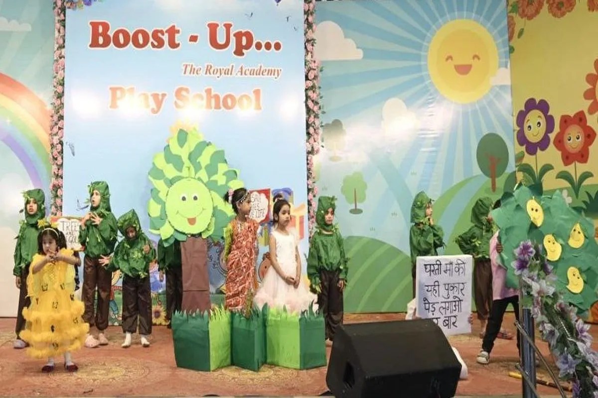 बूस्ट-अप... द रॉयल एकेडमी प्ले स्कूल के वार्षिकोत्सव में ‘सेव ट्री’ विषय पर नृत्य-नाटिका के माध्यम से पर्यावरण संरक्षण का संदेश देते नन्हे बच्चे।