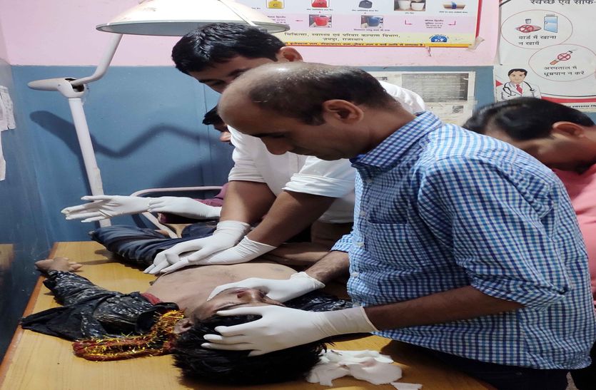 थांवला। लूनी नदी में डूबने से घायल हुए युवक का इलाज करते चिकित्सक।