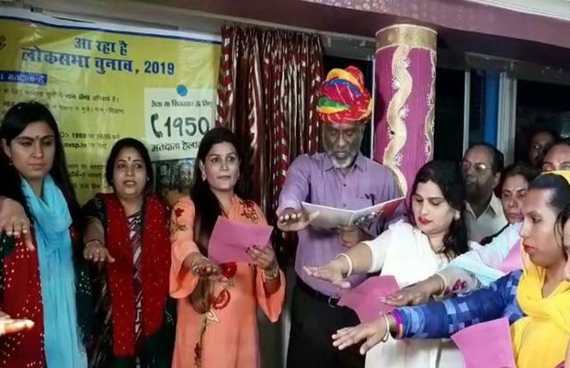 अजमेर. लोकसभा आमचुनाव में शत प्रतिशत मतदान सुनिश्चित करने के लिए जिला निर्वाचन विभाग ने सोमवार को दरगाह क्षेत्र स्थित किन्नर हवेली में जाकर मतदान की अपील की। किन्नर समाज ने शत प्रतिशत मतदान करने की शपथ ली।