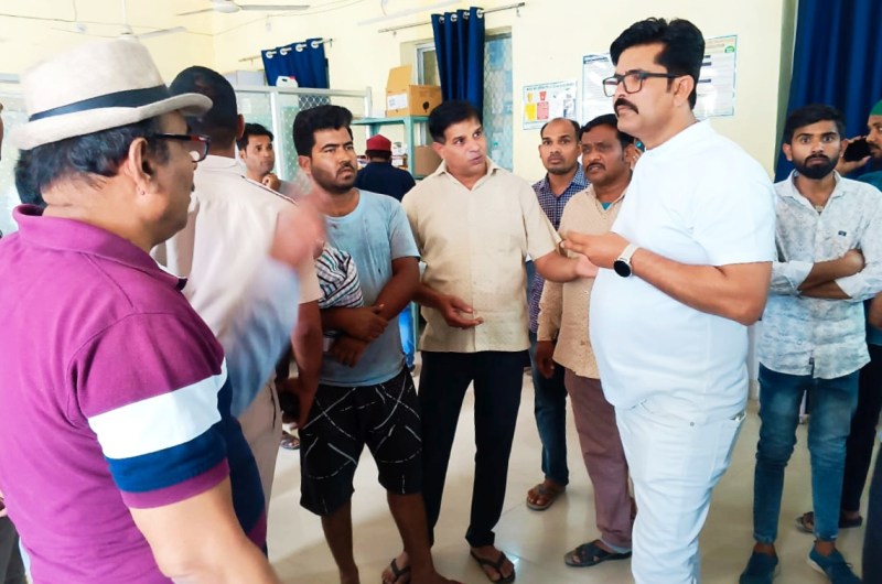 पीड़ित पक्ष से घटना की जानकारी लेते नगरपालिका सावर के अध्यक्ष विश्वजीत सिंह शक्तावत