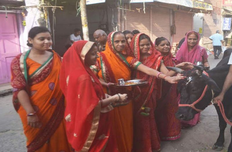 Womens worship cow and calf on religious occassion