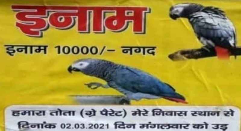 रमेश ने पुलिस को यह भी बताया कि उनका तोता बिल्कुल इंसान की तरह बोलता है। अब रमेश ने तोते पर दस हजार रुपये का इनाम रखा है। तोते का पता लगाने वाले को दस हजार रुपये का इनाम के रूप में देने की बात कहते हुए सोशल मीडिया पर अपील की जा रही है। पंपलेट भी बनवा कर दीवारों पर चस्पा कराएं गए हैं। सोशल मीडिया पर की जा रही अपील में लिखा गया है कि क्वारसी थाना क्षेत्र में बोलने वाले तोते की गुमशुदगी दर्ज की गई है। यदि किसी को भी इस तोते के बारे में कोई सूचना मिलती है तो तोते के बारे में 112 पर सूचना दे सकते हैं