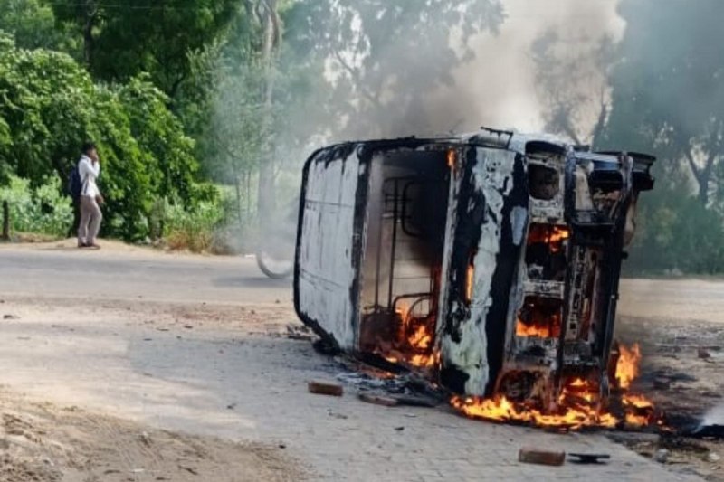 उन्होंने बताया कि जब वह अधिकारियों के साथ अपनी स्कॉर्पियो कार में बैठकर उपद्रवियों का समझा रहे थे। इसी बीच 150 से ज्यादा हमलावरों ने उनकी गाड़ी को घेर लिया और तीनों के साथ अभद्र व्यवहार करते हुए गाड़ी से नीचे उतार दिया। इसके बाद उन्हें जान से मारने की धमकी देते हुए गाड़ी को पलटकर आग के हवाले कर दिया। इसके बाद तीनों ने मौके से भागकर अपनी जान बचाई।