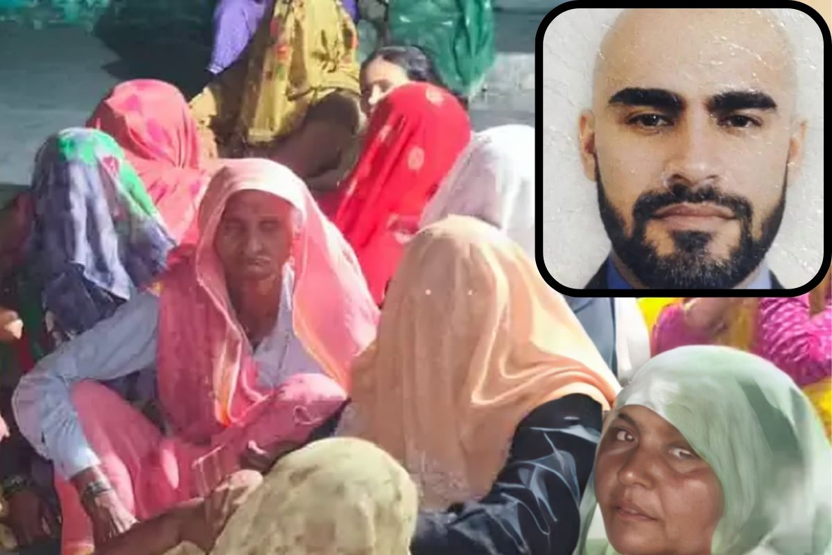 अलीगढ़ में वेदपाल की हत्या के बाद घर के बाहर लगी रिश्तेदारों की भीड़।