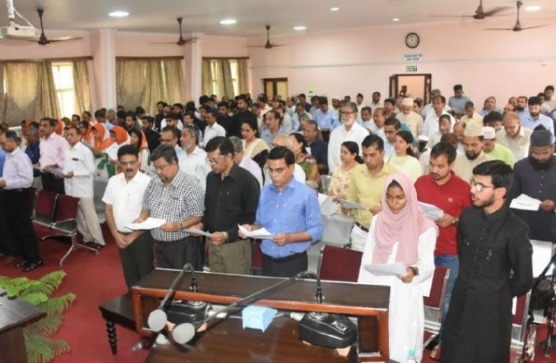 प्रो. मंसूर ने कहा कि गांधी जी द्वारा अपनाए गये अंहिसा के सिद्धांत से आज भी विश्व को होने वाली अशांति अथवा युद्ध जैसी चुनौतियों से सुरक्षित बनाया जा सकता है। मानव समाज के सभी वर्गों को शांति, सुरक्षा, खुशहाली तथा सर्वधर्म समभाव का वातावरण सुनिश्चित किया जा सकता है। इस अवसर पर कुलपति ने सभी उपस्थितजनों को राष्ट्रीय एकता, अखण्डता, सम्प्रभुता तथा स्वतंत्रता के साथ ही स्वच्छता की शपथ दिलाई।