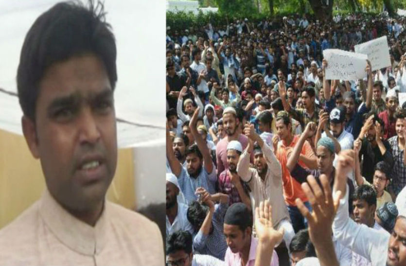 अलीगढ़। बाबे सैयद गेट पर एएमयू छात्रों का धरना दसवें दिन भी जारी है। धरने के दौरान एएमयू के पूर्व छात्रसंघ अध्यक्ष फैजुल हसन ने मीडिया से बात की। बातचीत के दौरान उन्होंने एसएसपी और डीएम को सीधे तौर पर धमकाते हुए उनकी नौकरी खा जाने की बात कही।