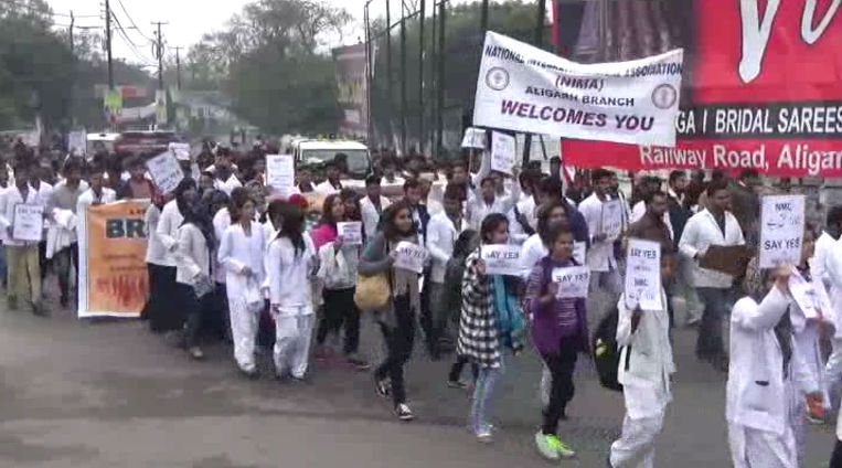 अलीगढ़। राष्ट्रीय चिकित्सा आयोग विधेयक के समर्थन में अलीगढ़ मुस्लिम विश्वविद्यालय के तिब्बिया कॉलेज के छात्र, शिक्षक व प्राइवेट आयुष कॉलेज के लोग आ गये हैं। राष्ट्रीय चिकित्सा आयोग विधेयक के समर्थन में तिब्बतिया कॉलेज से बांबे सैय्यद गेट तक शांति पूर्वक मार्च निकाला गया। इसमें प्राइवेट आयुर्वेदिक कॉलेज के छात्र भी शामिल हुए, छात्रों ने सरकार के बिल लाने का समर्थन किया है।