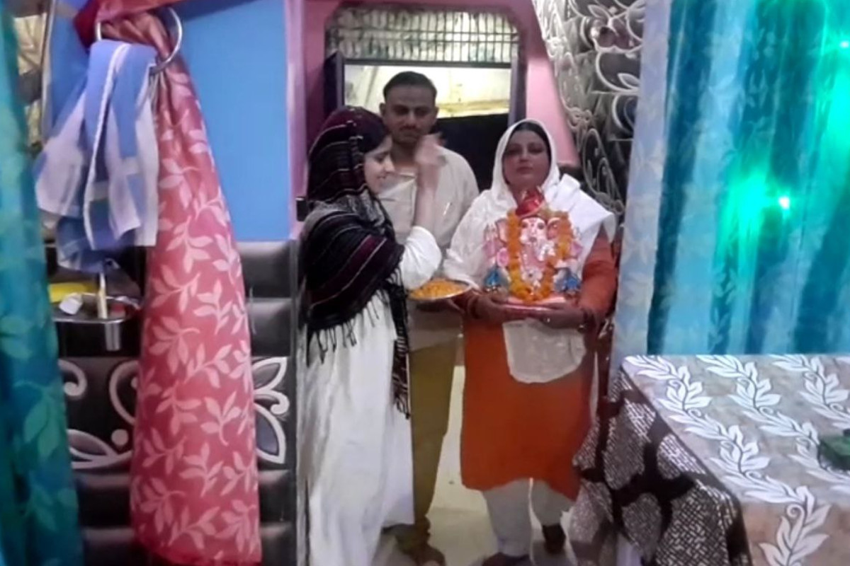 यूपी के अलीगढ़ की रहने वाली एक मुस्लिम महिला ने अपने घर में गणेश चतुर्थी के मौके पर गणपति की मूर्ति स्थापित की है। मुस्लिम महिला रुबीना खानम ने घर में गणेश की मूर्ति विराजमान करने को लेकर कहा है कि मैं हिंदुओं के सभी त्योहार मनाती हूं और मैं फतवों से भी नहीं डरती हूं। इतना ही नहीं मुस्लिम महिला ने बड़ा बयान देते हुए कहा है कि हिंदू देवी-देवताओं पर टिप्पणी करने वाले मुस्लिम समुदाय के यूपी के सहारनपुर के मौलाना है वो जेहादी और उग्रवादी हैं। जबकि मौलाना ने रूबी आसिफ खान का फतवा जारी किया है।